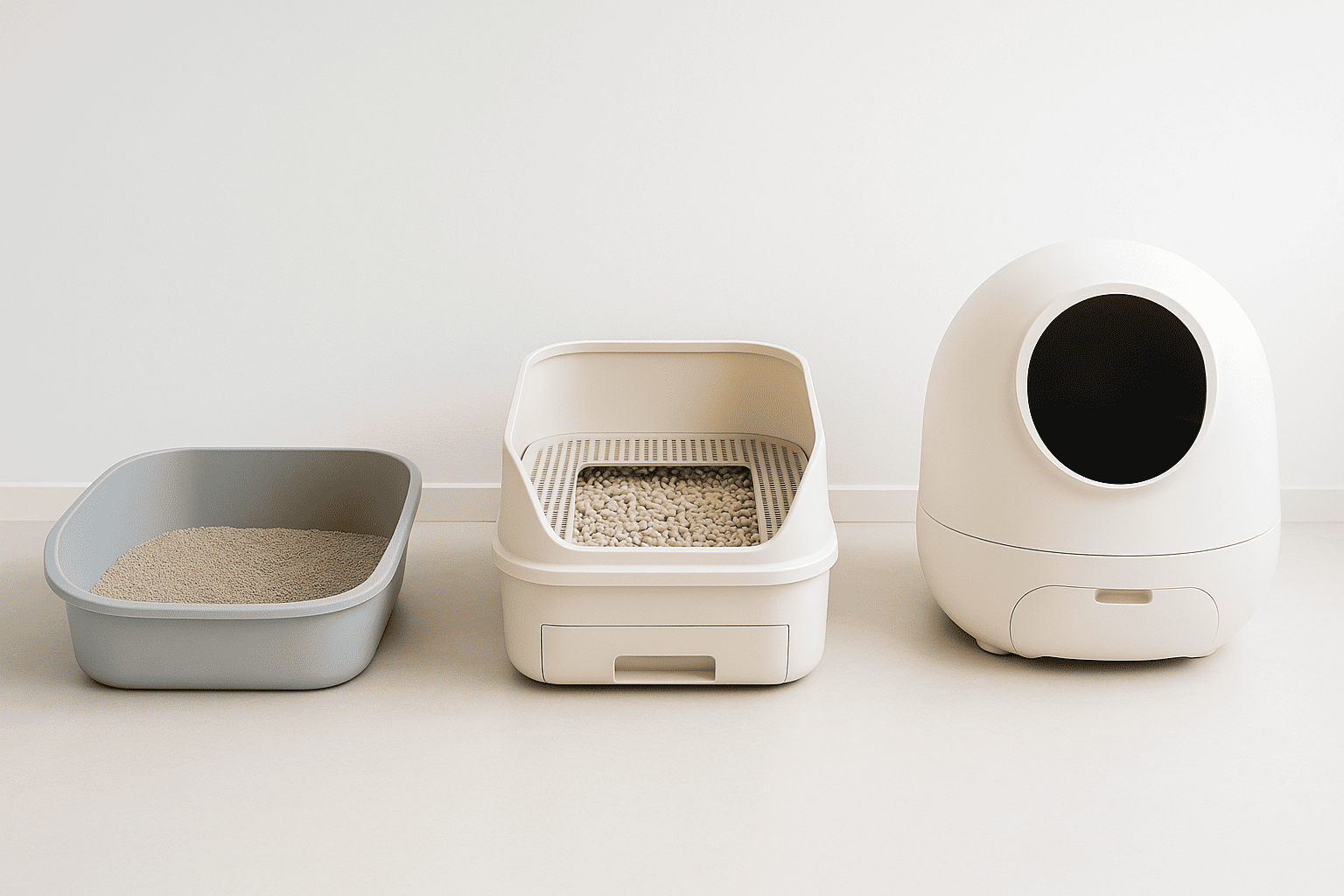 猫トイレは、仕組みによって3つのタイプに分類できます。それぞれの特徴を理解して、あなたの生活スタイルに合ったものを選びましょう。